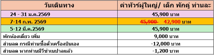 8 วัน 7 คืน (มกรา 2569 - มีนา 2569)