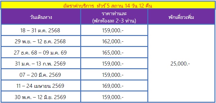 14 วัน 12 คืน (พฤศจิ 2568 - พฤษภา 2569)