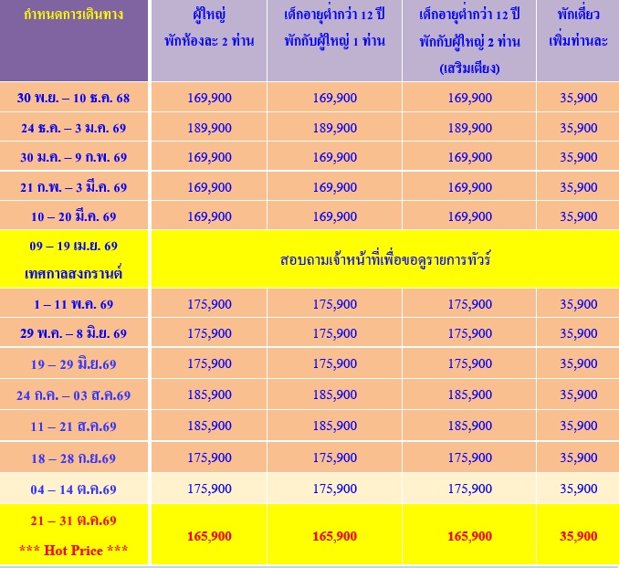 11 วัน 8 คืน (พฤศจิ 2568 - ตุลา 2569)