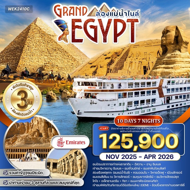 กำหนดการเดินทาง ทัวร์อียิปต์ ล่องแม่น้ำไนล์ พักเรือสำราญ 3 คืน 10 วัน -EK 2569