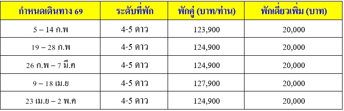10 วัน 7 คืน (กุมภา 2569 - เมษา 2569)