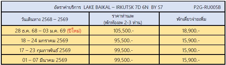 กำหนดการเดินทาง ทัวร์ไบคาล เอียร์คุสต์ เกาะโอลคอน 7 วัน 6 คืน - S7 2568-2569