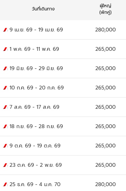 11 วัน 8 คืน (เมษา 2569 - ธันวา 2569)