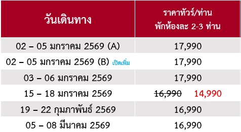 4 วัน 3 คืน (มกรา 2569 - มีนา 2569)