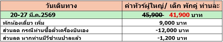 8 วัน 7 คืน (20-27 มีนา 2569)