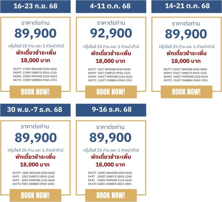 8 วัน 5 คืน (ตุลา 2568 - ธันวา 2568)