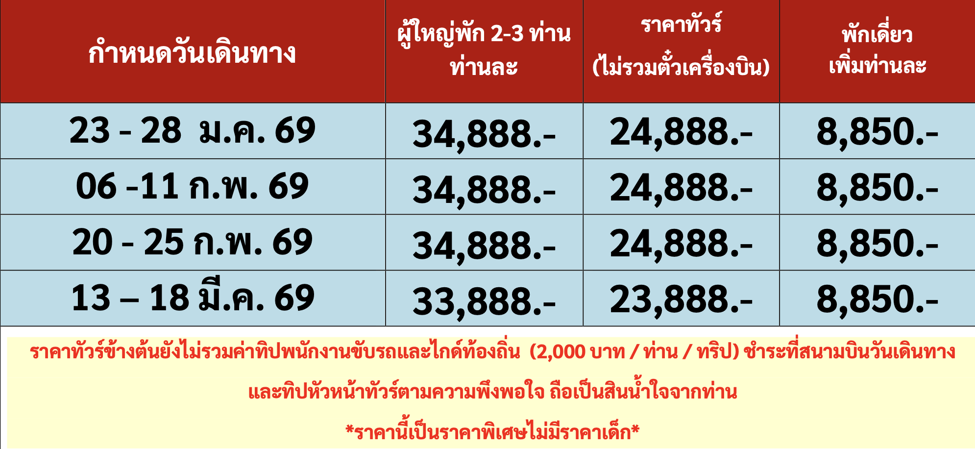 6 วัน 4 คืน (สิงหา 2568 - ตุลา 2568)