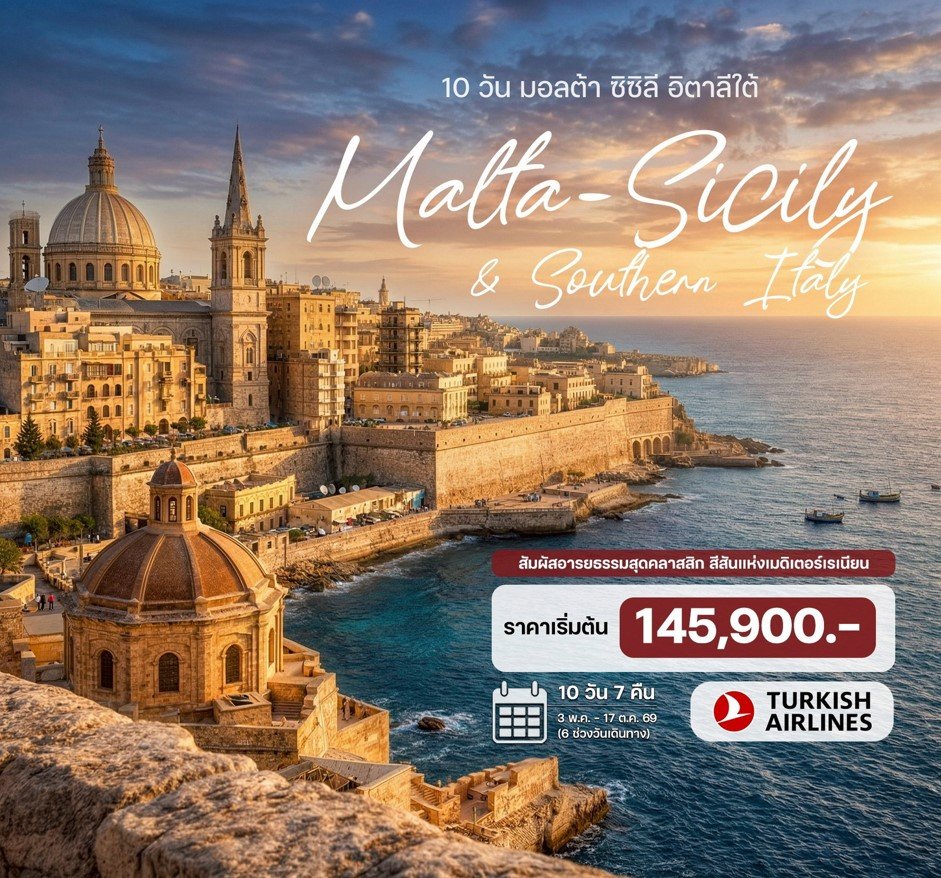 กำหนดการเดินทาง ทัวร์มอลต้า ซิซิลี อิตาลีใต้ 10 วัน 7 คืน -TK   2569