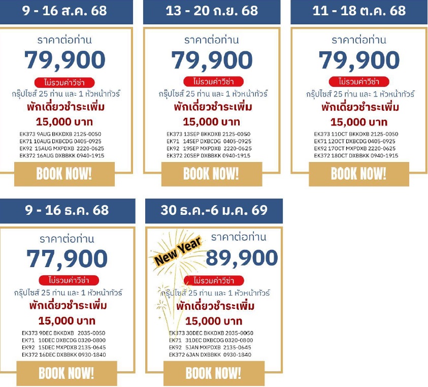 8 วัน 5 คืน (ตุลา 2568 - ปีใหม่ 2569)