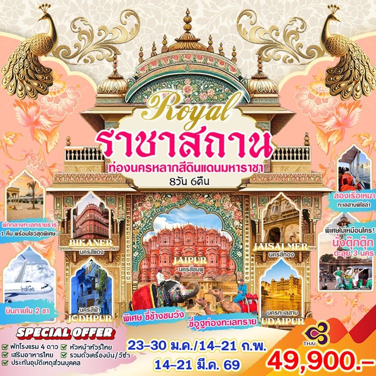 ทัวร์ราชาสถาน อินเดีย (บินภายใน 2 ขา) 8 วัน 6 คืน -TG