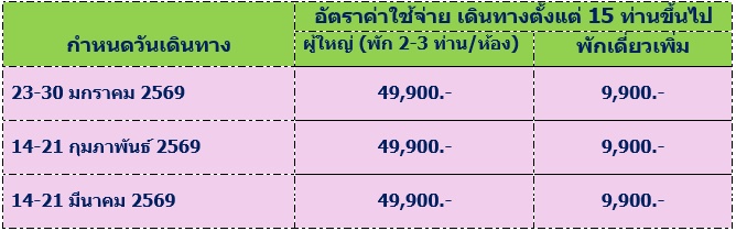 8 วัน 6 คืน (มกรา 2569 - มีนา 2569)