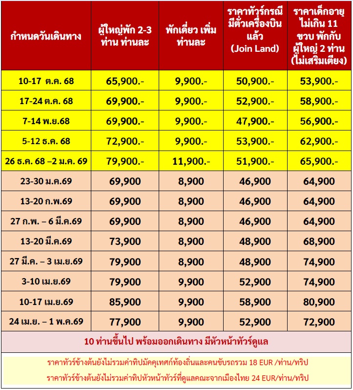 8 วัน 5 คืน (ตุลา 2568 - เมษา 2569)