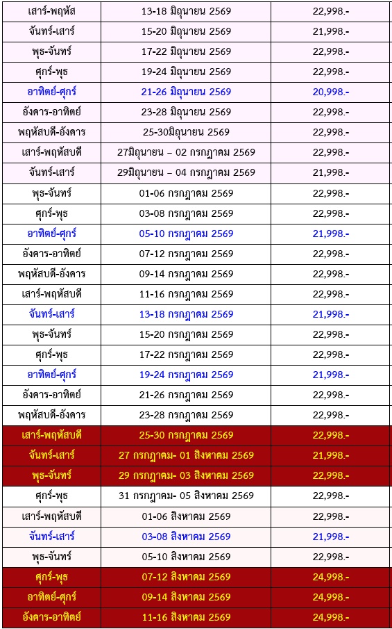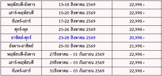 6 วัน 5 คืน (กุมภา 2569 - สิงหา 2569)
