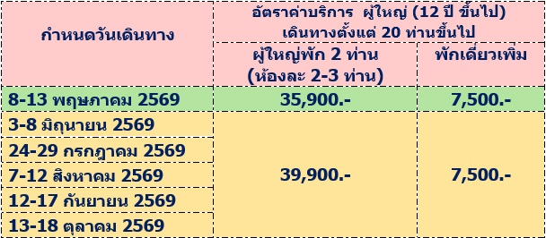 6 วัน 5 คืน (พฤษภา 2569 - ธันวา 2569)