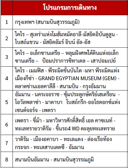 กำหนดการเดินทาง ทัวร์อียิปต์ จอร์แดน 8 วัน 5 คืน - RJ   2569