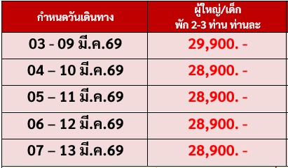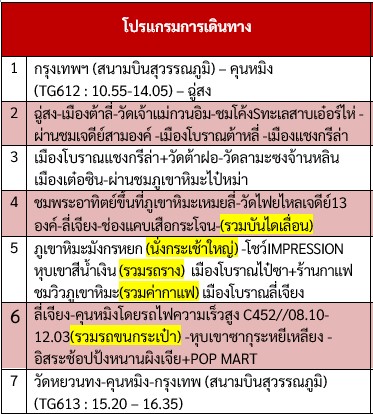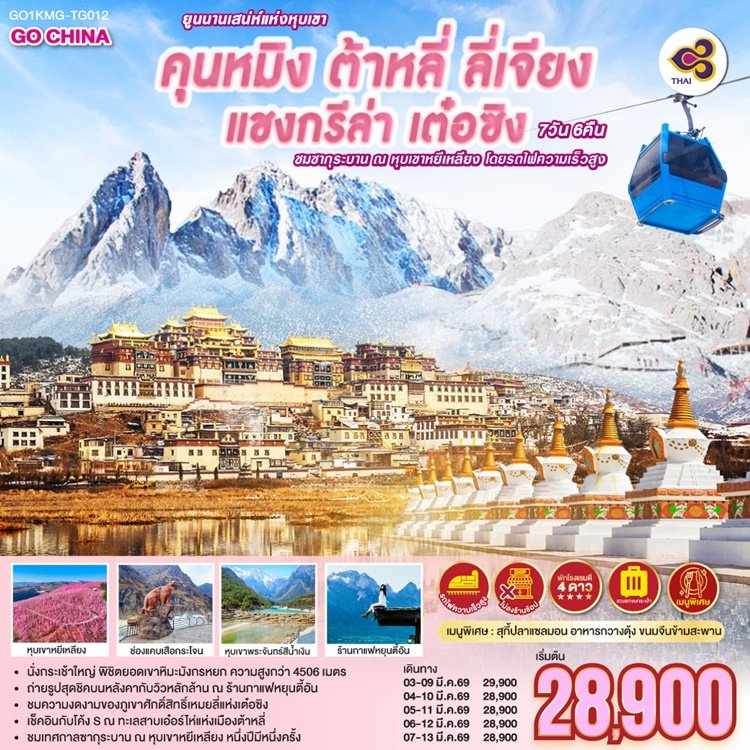 กำหนดการเดินทาง ทัวร์คุนหมิง ต้าหลี่ ลี่เจียง แชงกรีล่า เต๋อซิง ซากุระ ไม่ลงร้าน 7 วัน -TG  2569