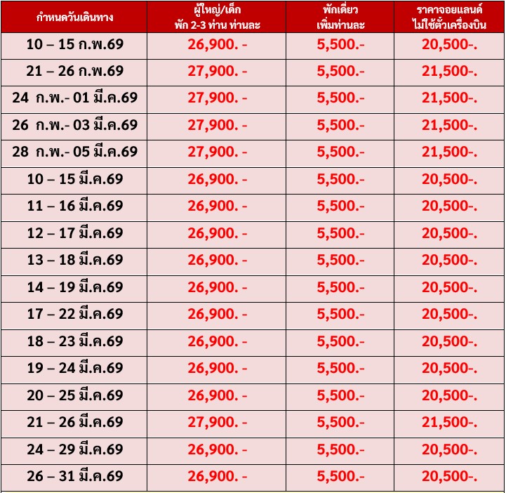 6 วัน 5 คืน (กุมภา 2569 -มีนา 2569)