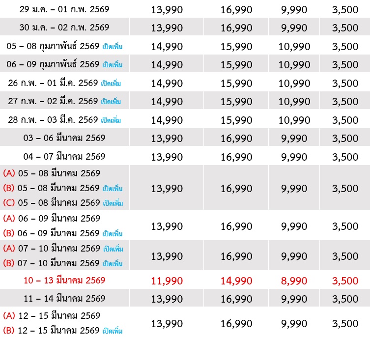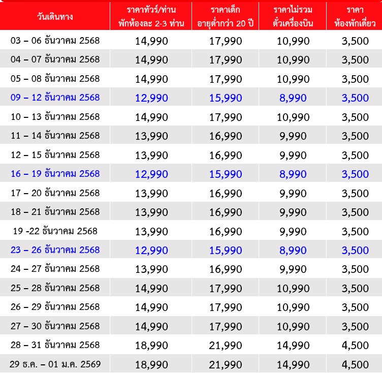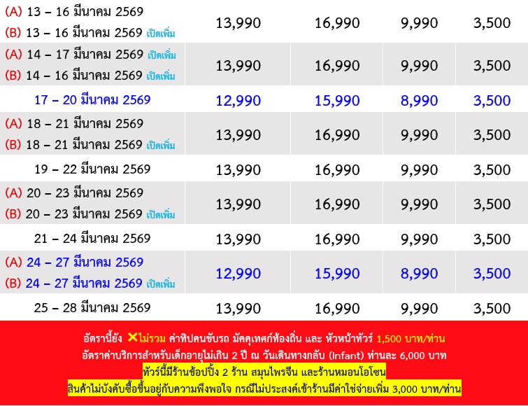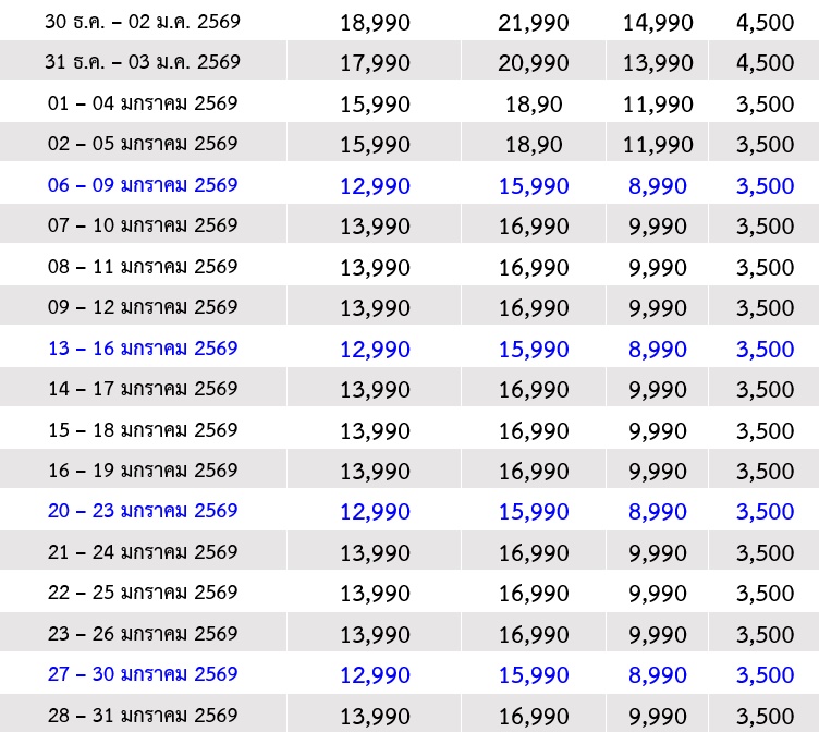 4 วัน 2 คืน (ธันวา 2568 - มีนา 2569)