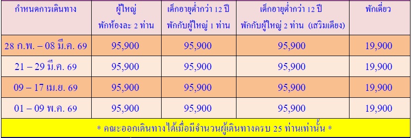 9 วัน 7 คืน (กุมภา 2569 - พฤษภา 2569)