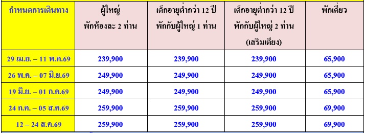 13 วัน 10 คืน (เมษา 2569 - สิงหา 2569)