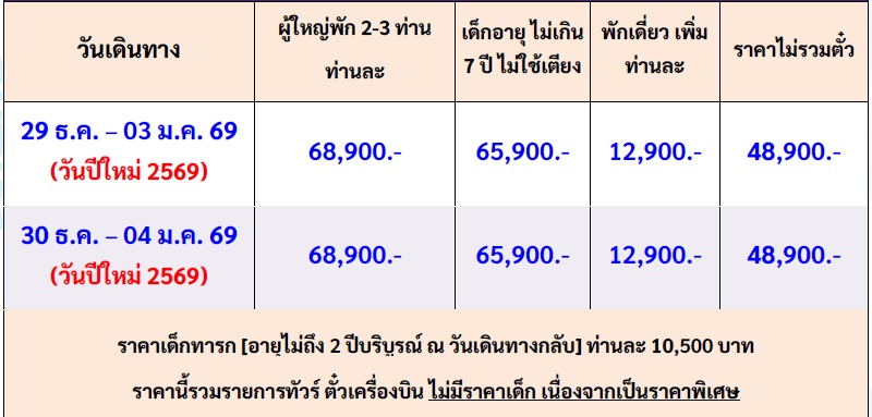 6 วัน 4 คืน (ธันวา 2568 - มกรา 2569)