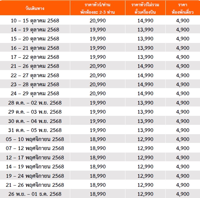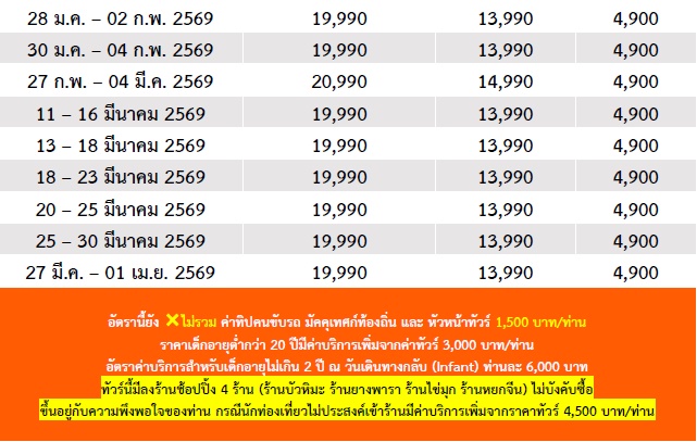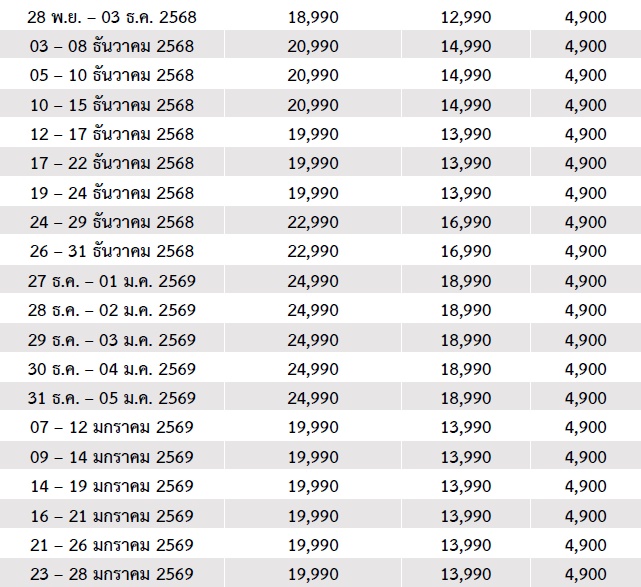 6 วัน 4 คืน (ตุลา 2568 - เมษา 2569)