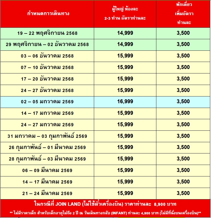 4 วัน 3 คืน (พฤศจิ 2568 - มีนา 2569)