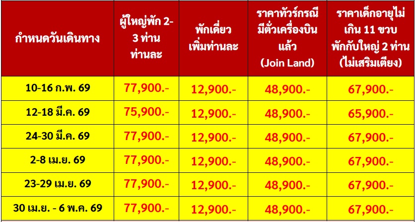 7 วัน 4 คืน (กุมภา 2569 - พฤษภา 2569)