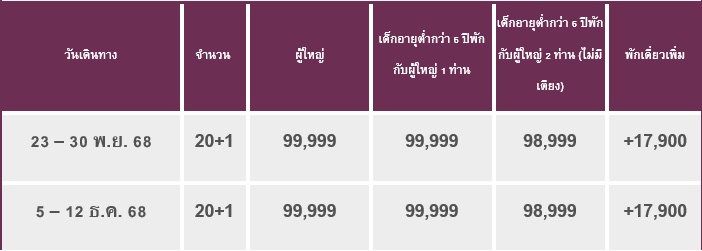 8 วัน 6 คืน (พฤศจิ 2568 - ธันวา 2568)