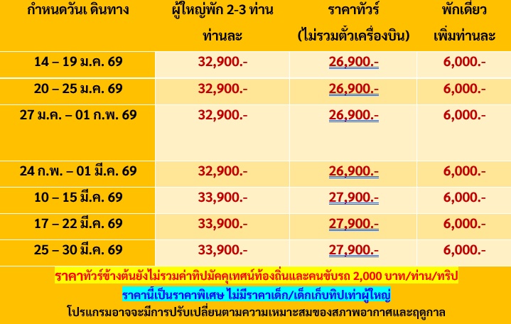 6 วัน 4 คืน (มกรา 2569 - มีนา 2569)