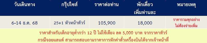 9 วัน 6 คืน (6 - 14 ธันวา)
