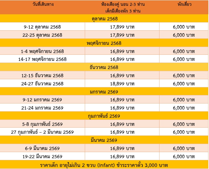 4 วัน 3 คืน (ตุลา 2568 - มีนา 2569)