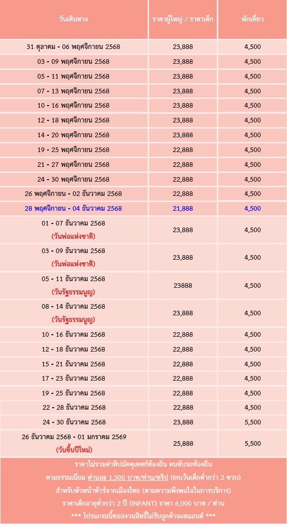 7 วัน 5 คืน (ตุลา 2568 - ธันวา 2568)
