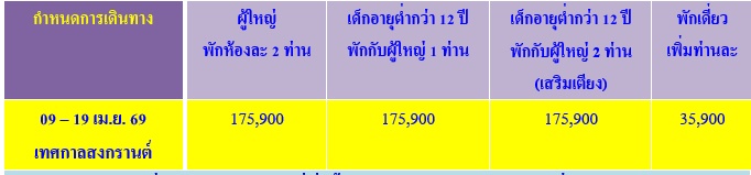 11 วัน 8 คืน (สงกรานต์ 9-19 เมษา 2569)