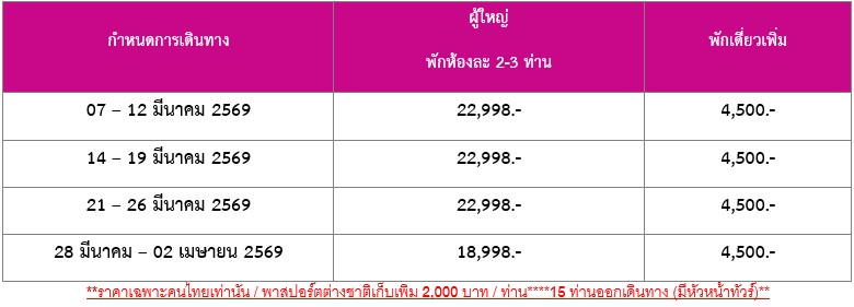 6 วัน 5 คืน (มีนา 2569)