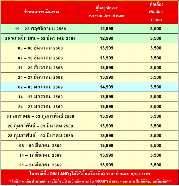 4 วัน 3 คืน (พฤศจิ 2568 - มีนา 2569)