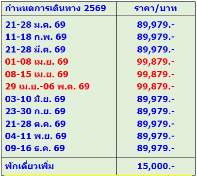 8 วัน 6 คืน (มกรา 2569 - ธันวา 2569)