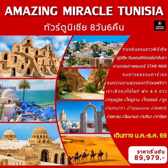 อ่านรายละเอียด ทัวร์ตูนิเซีย Miracle Tunisia 8 วัน 6 คืน -TK เพิ่มเติม (upd 211168)