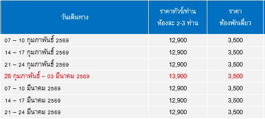 4 วัน 3 คืน (กุมภา 2569 - มีนา 2569)