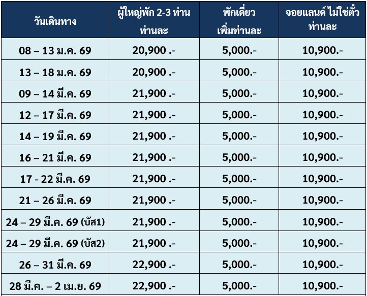 6 วัน 5 คืน (มกรา 2569 - มีนา 2569)