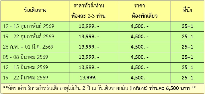 4 วัน 3 คืน (กุมภา 2569 - มีนา 2569)