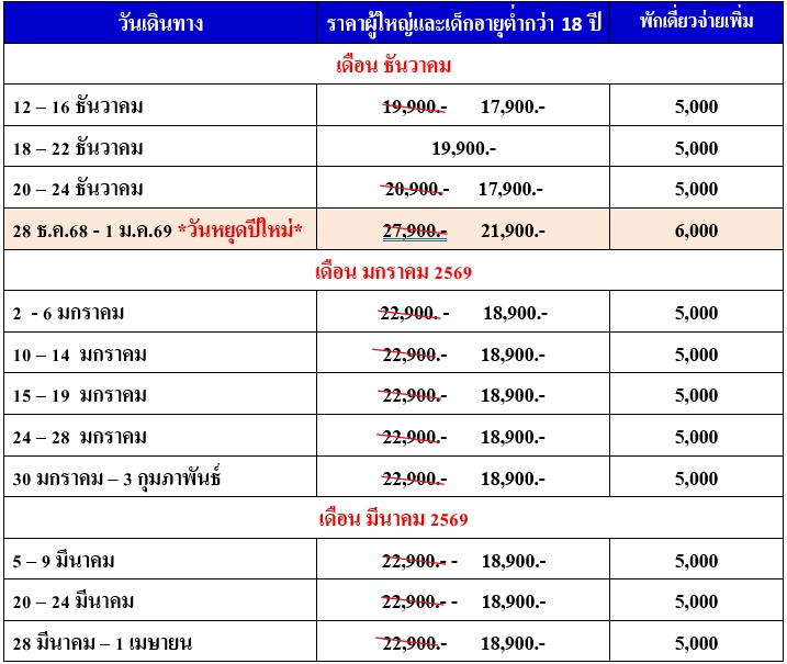 5 วัน 4 คืน (ธันวา 2568 - มีนา 2569)