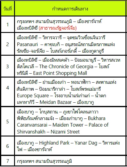 กำหนดการเดินทาง ทัวร์จอร์เจีย อาเซอร์ไบจาน 7 วัน 5 คืน -G9 2569