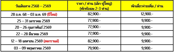 7 วัน 5 คืน (มกรา 2569 - พฤษภา 2569)