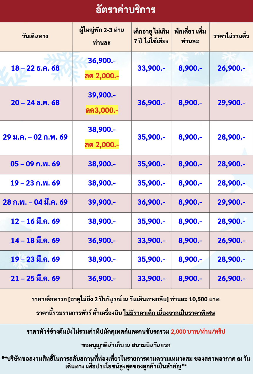 5 วัน 3 คืน (ธันวา 2568 - มีนา 2569)