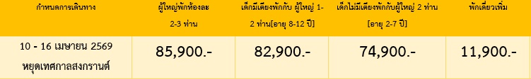 7 วัน 4 คืน (สงกรานต์ 10-16 เมษา 2569)