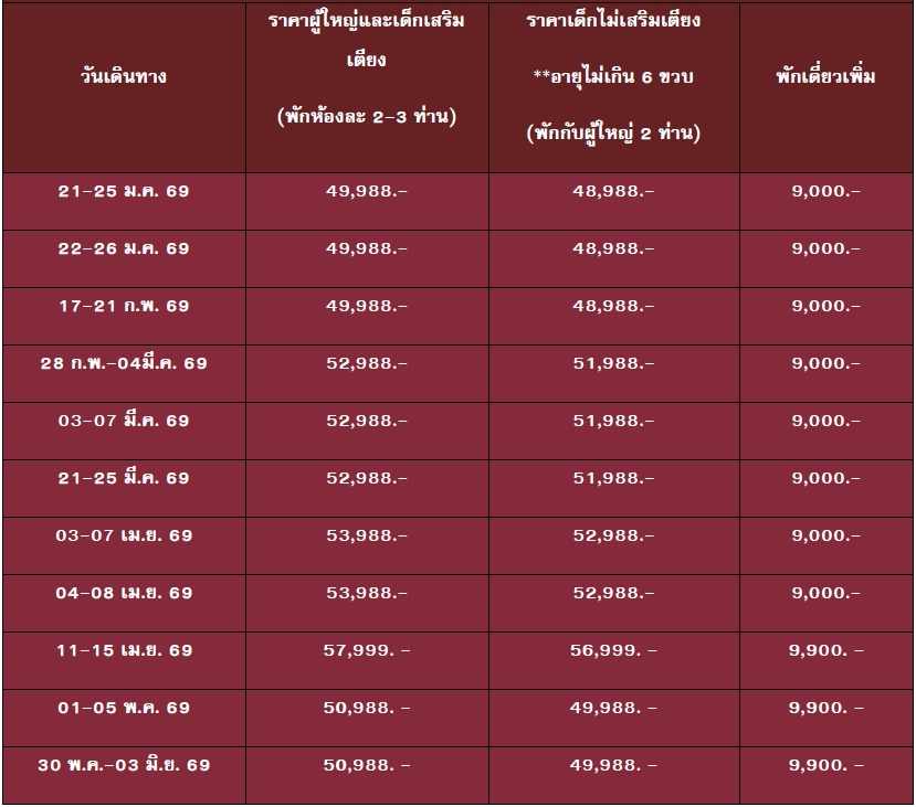5 วัน 3 คืน (มกรา 2569 - พฤษภา 2569)