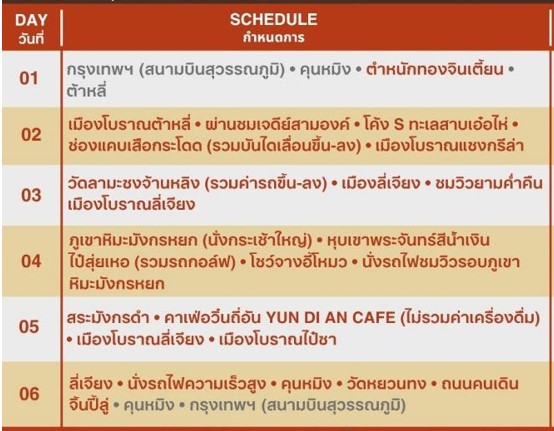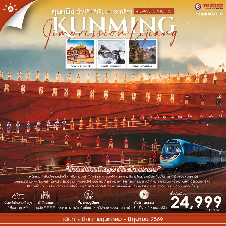 กำหนดการเดินทาง ทัวร์คุนหมิง ต้าหลี่ ลี่เจียง แชงกรีล่า 6 วัน 5 คืน -MU   2569