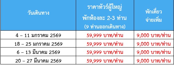 8 วัน 7 คืน (มกรา 2569 - มีนา 2569)
