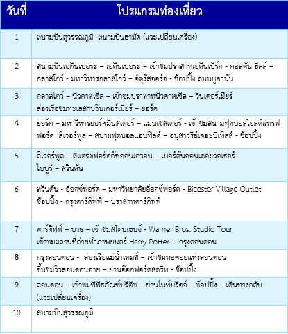 กำหนดการเดินทาง ทัวร์อังกฤษ สก็อตแลนด์ เวลส์ 10 วัน 7 คืน -QR    2569